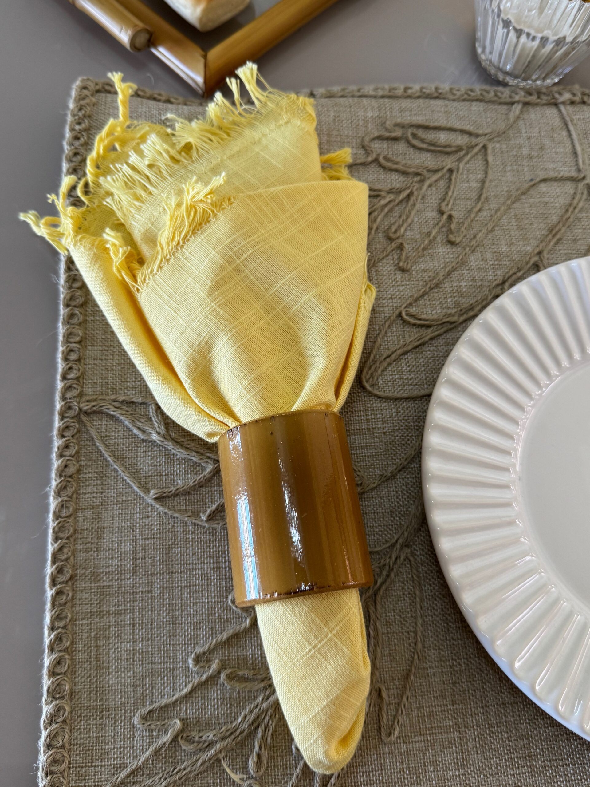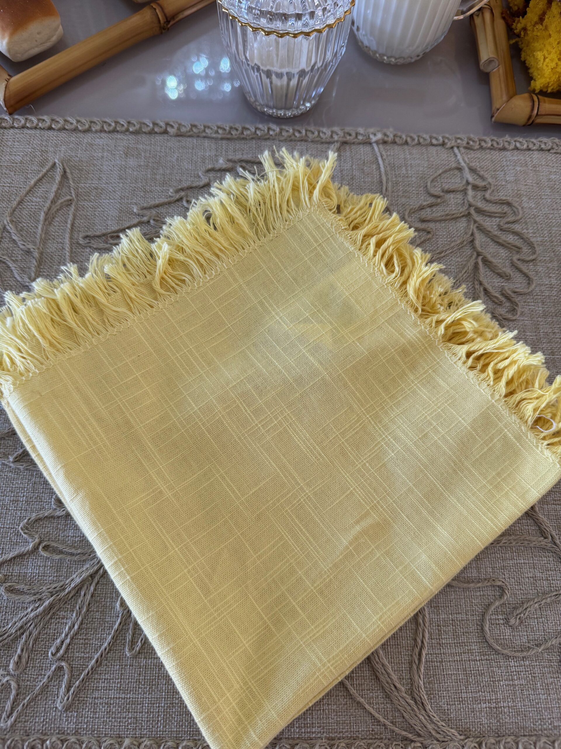 Lugar americano feito de Linho na cor amarelo com franja, ideal para colorir e deixar a sua Mesa ainda mais bonita!