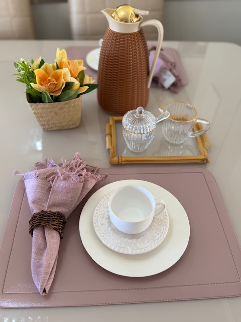 Lugar americano feito de PVC , na cor Rosa Vintage, ideal para usar no dia a dia. Prático e fácil de limpar.