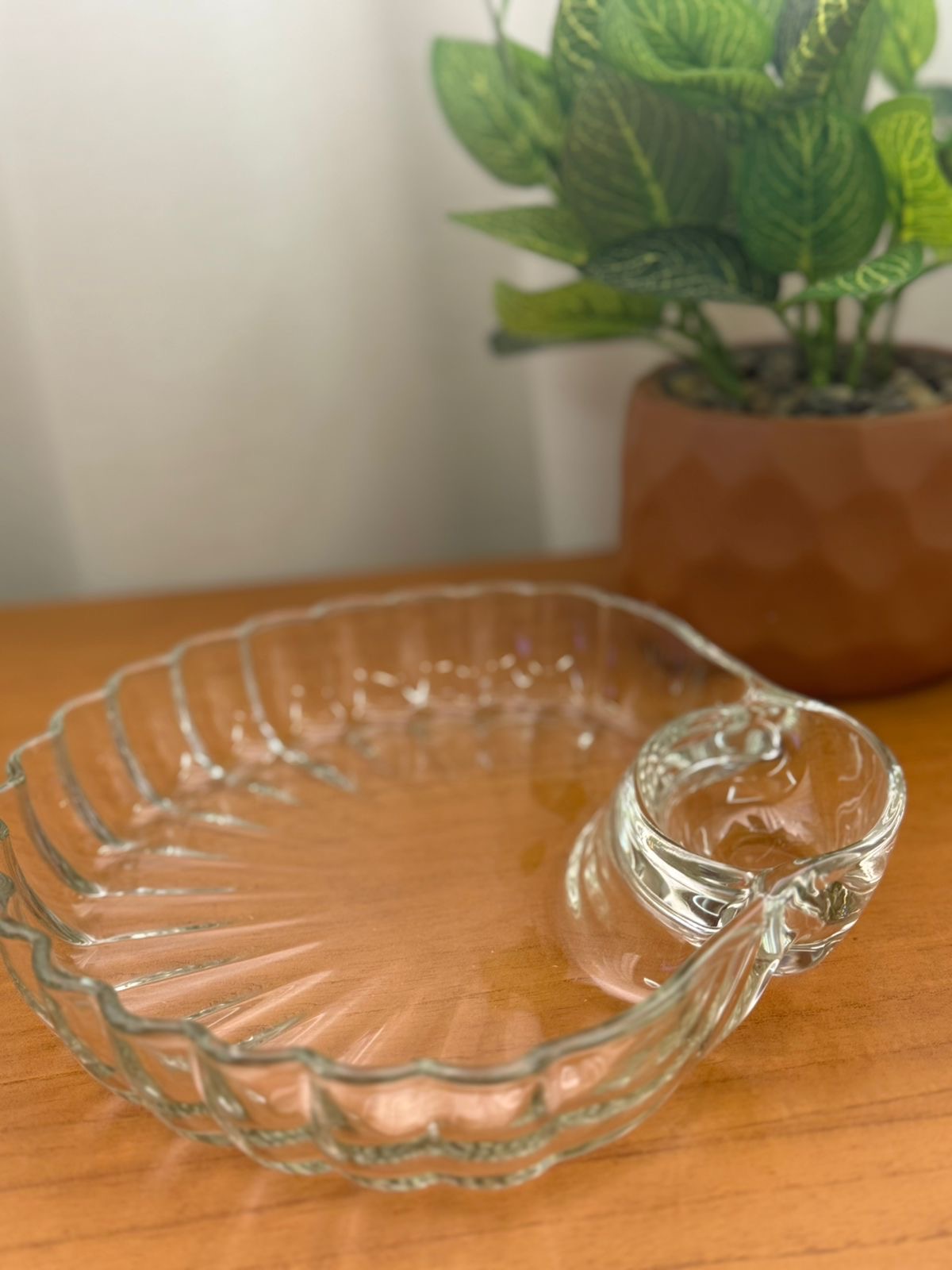 Petisqueira feita de cristal com divisória para molho, ideal para deixar a sua mesa de petiscos ainda mais charmosa!