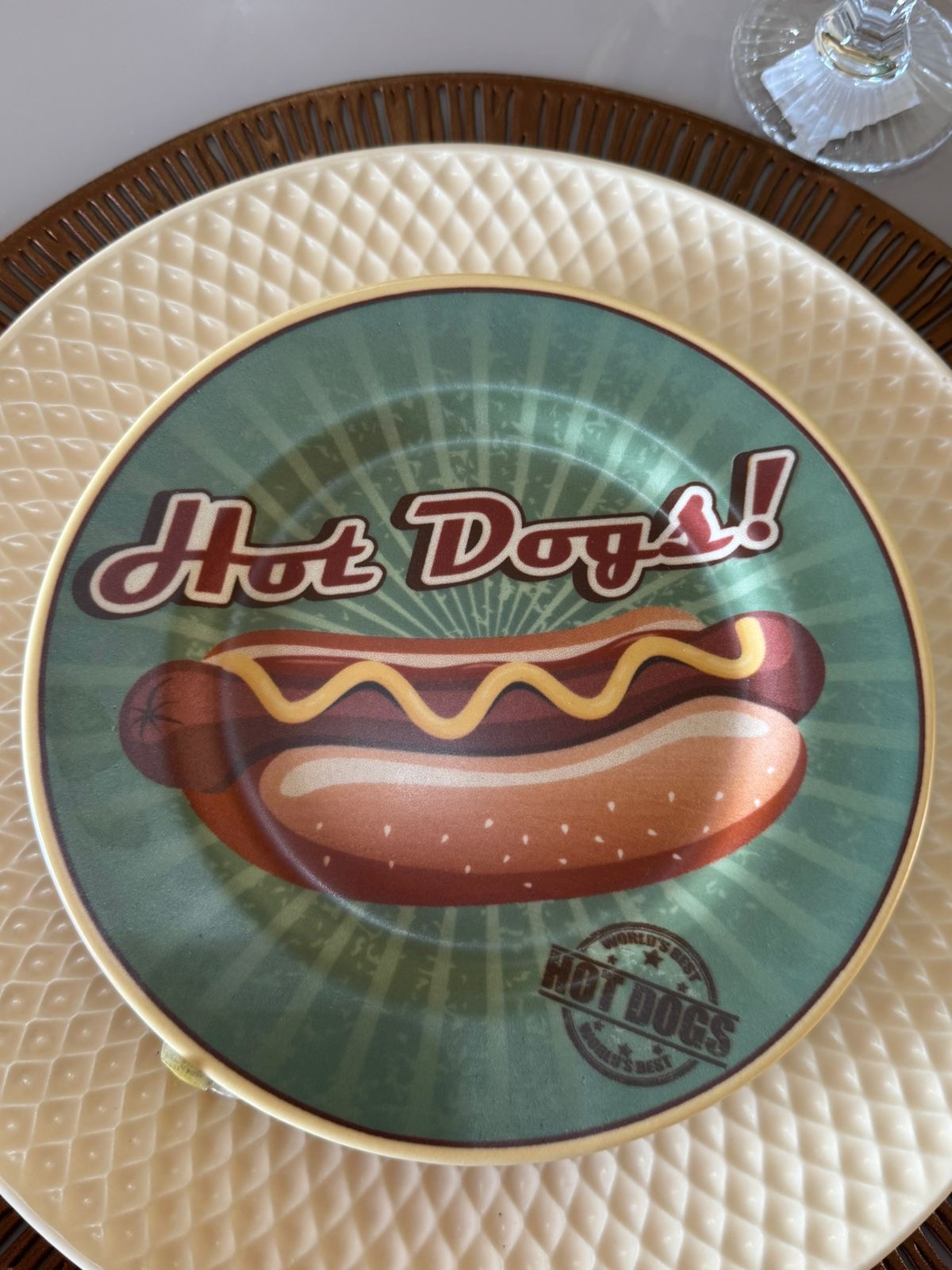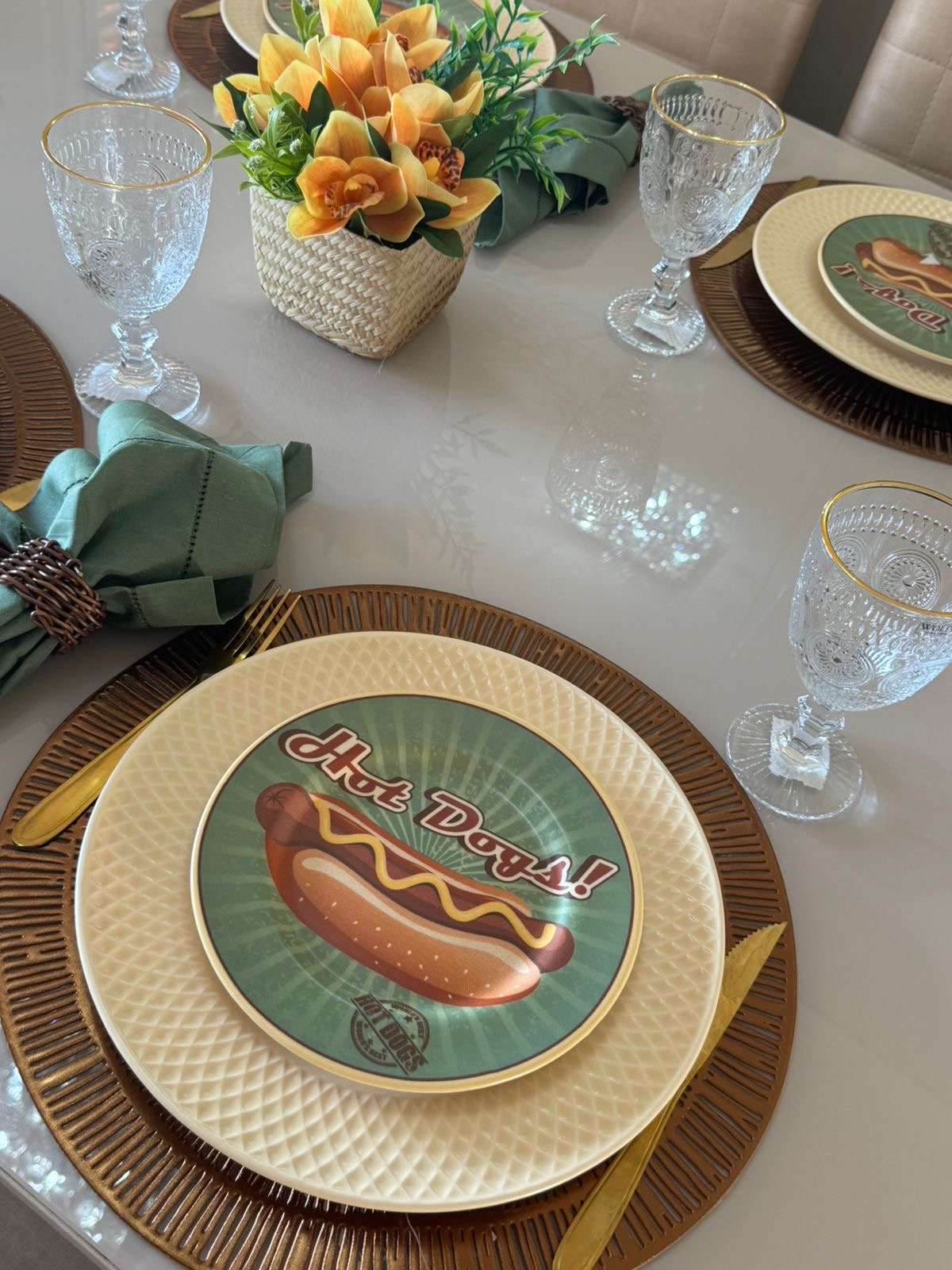 Prato de sobremesa feito de cerâmica, com estampa de Hot dog, a sua mesa posta ainda mais divertida e convidativa.