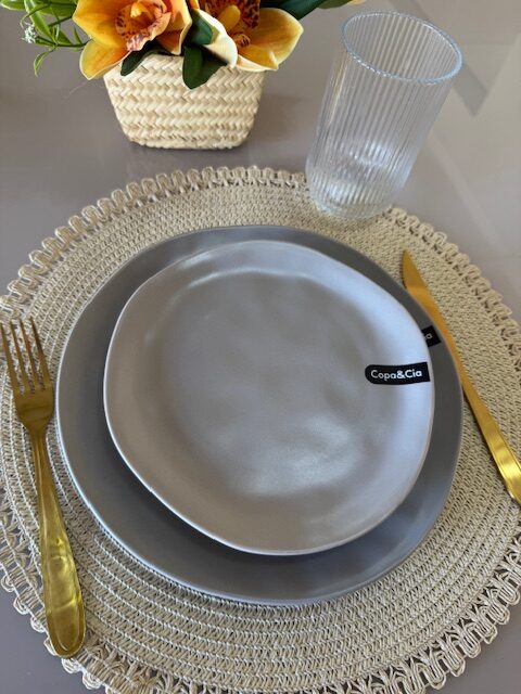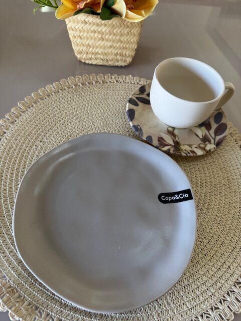 Prato de sobremesa feito de cerâmica , da linha orgânica na cor gelo, acabamento fosco e design moderno. Ideal para a sua mesa de café da manhã ou lanche