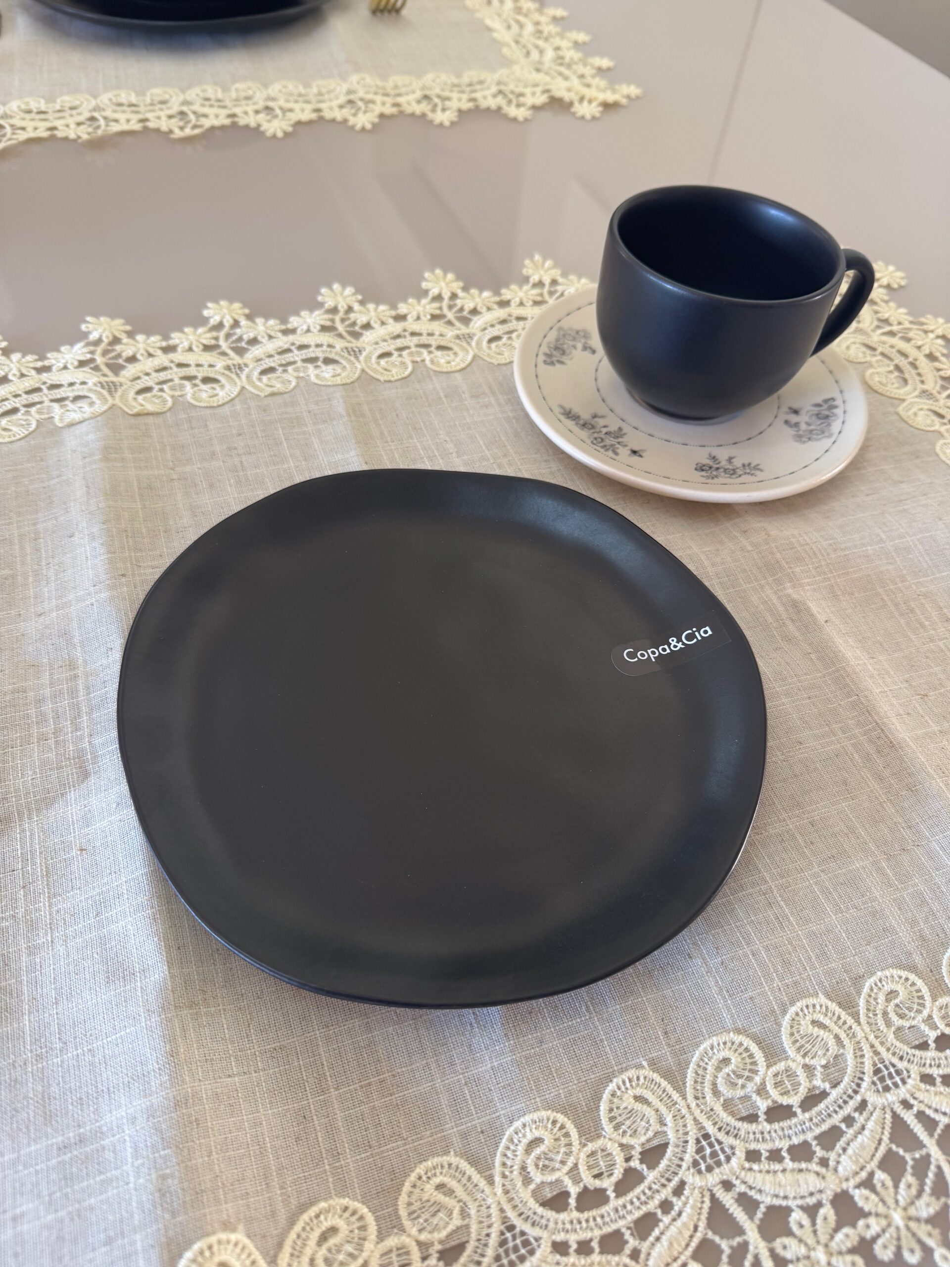Prato de sobremesa feito de cerâmica, da linha orgânica na cor preto, acabamento fosco e design moderno. Perfeito para a sua mesa de café da manhã ou lanche.