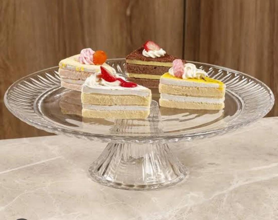 Prato para bolo feito de cristal com pé, sem tampa. Perfeito para servir e encantar!
