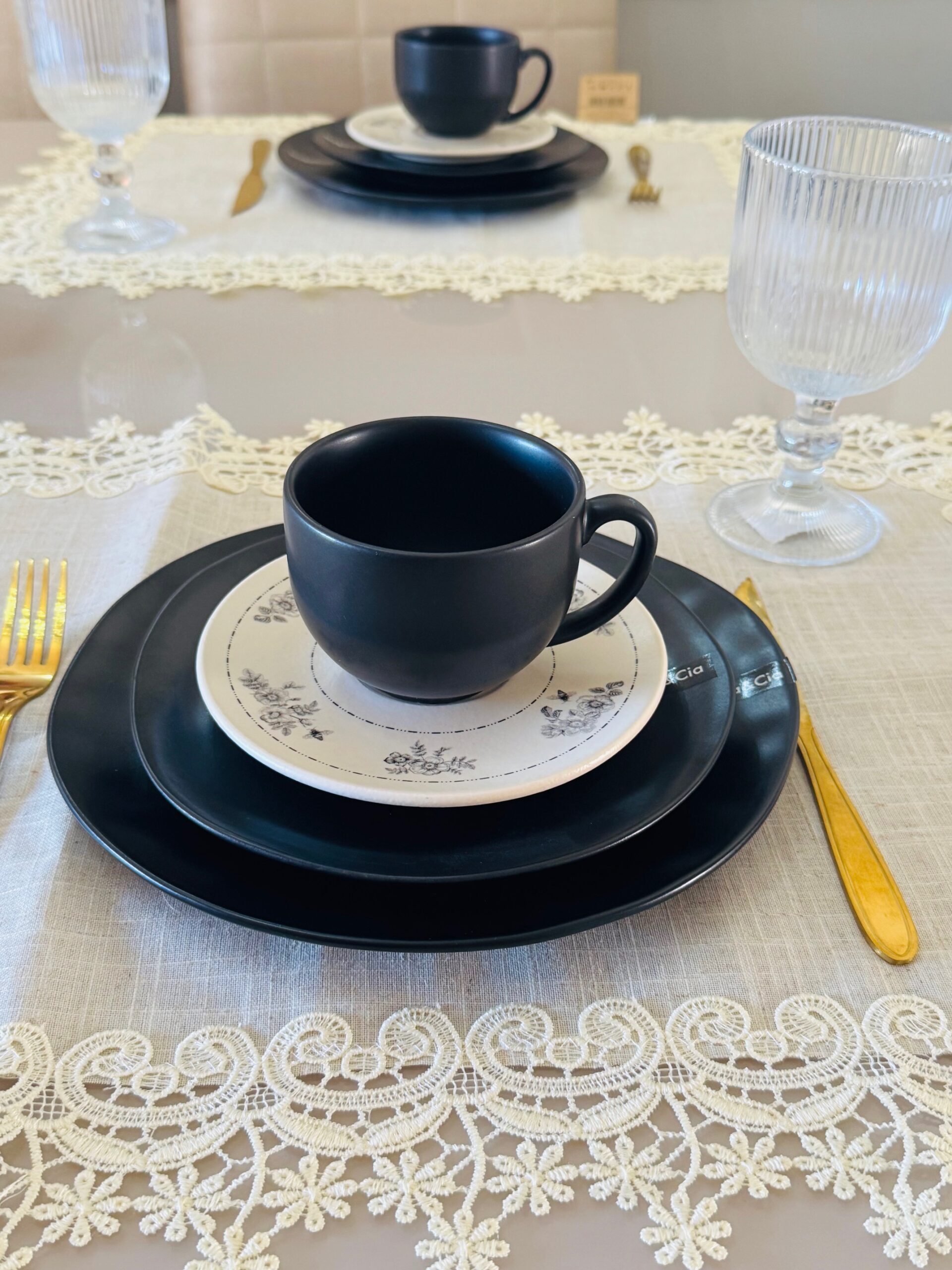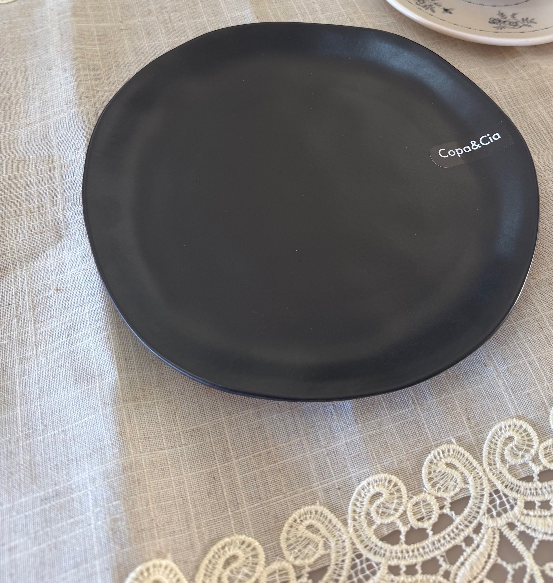 Prato raso, feito de cerâmica, da linha orgânica na cor preto, acabamento fosco e design moderno. Perfeito para servir as suas refeições de forma pratica e elegante.
